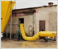 Холодный воздух, при помощи вентилятора, поступает в корпус тепловой пушки и нагревается, проходя через закрытую камеру сгорания. На выходе мы получаем чистый горячий воздух. Продукты сгорания выводятся через дымовую трубу.